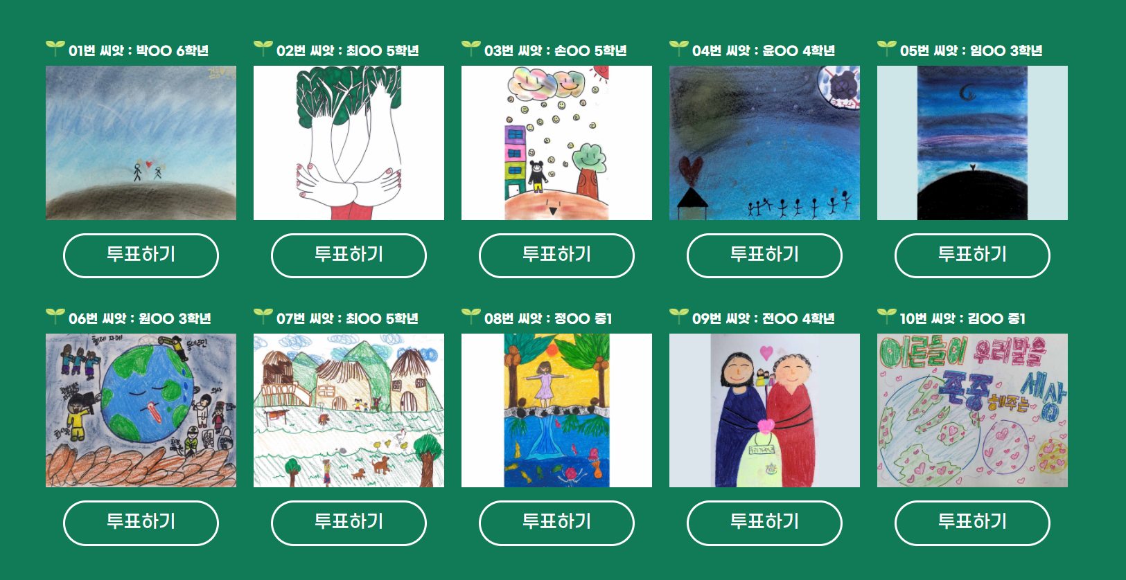 전국 34개 지역아동센터에서 진행된 미술 심리안정교육을 통해 아이들이 꿈꾸는 세상을 표현한 그림을 모았고, 이 중 인상 깊은 작품은 한화솔루션 직원들이 직접 골라서 한마음 씨앗 홈페이지에 전시했습니다.
