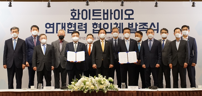 이번 ‘화이트 바이오 연대협력 협의체’ 발족식에는 한화솔루션 이구영 대표이사, 산업통상자원부 성윤모 장관, GS칼텍스, 롯데케미칼 등 10여개 기업의 대표이사 등이 참석해 화이트 바이오 산업의 글로벌 경쟁력 강화 목적으로 연대협력을 하기로 선언하였습니다.