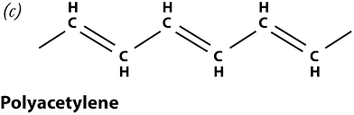 전도성 고분자는 위에서 언급한 폴리아세틸렌 외에도 약 25가지 정도가 있으며, 폴리피롤(polypyrrole), 폴리싸이오펜(polythiophene), poly(3,4-ethylene dioxythio-phene) (PEDOT), 폴리아닐린(polyaniline) 등이 대표적입니다.