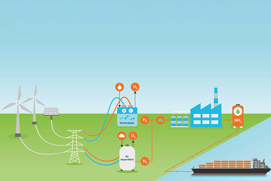암모니아는 보통 천연가스나 석탄을 이용해 만들기 때문에 생산과정에서 탄소를 배출하게 됩니다. 그린 암모니아는 물을 전기분해해 수소를 생산하고 여기에 공기 중 질소를 합성해 탄소배출이 없어 친환경적입니다. 그린 암모니아는 이산화탄소배출 없는 그린 수소 경제를 위해서도 꼭 필요한 소스로 주목받고 있습니다.