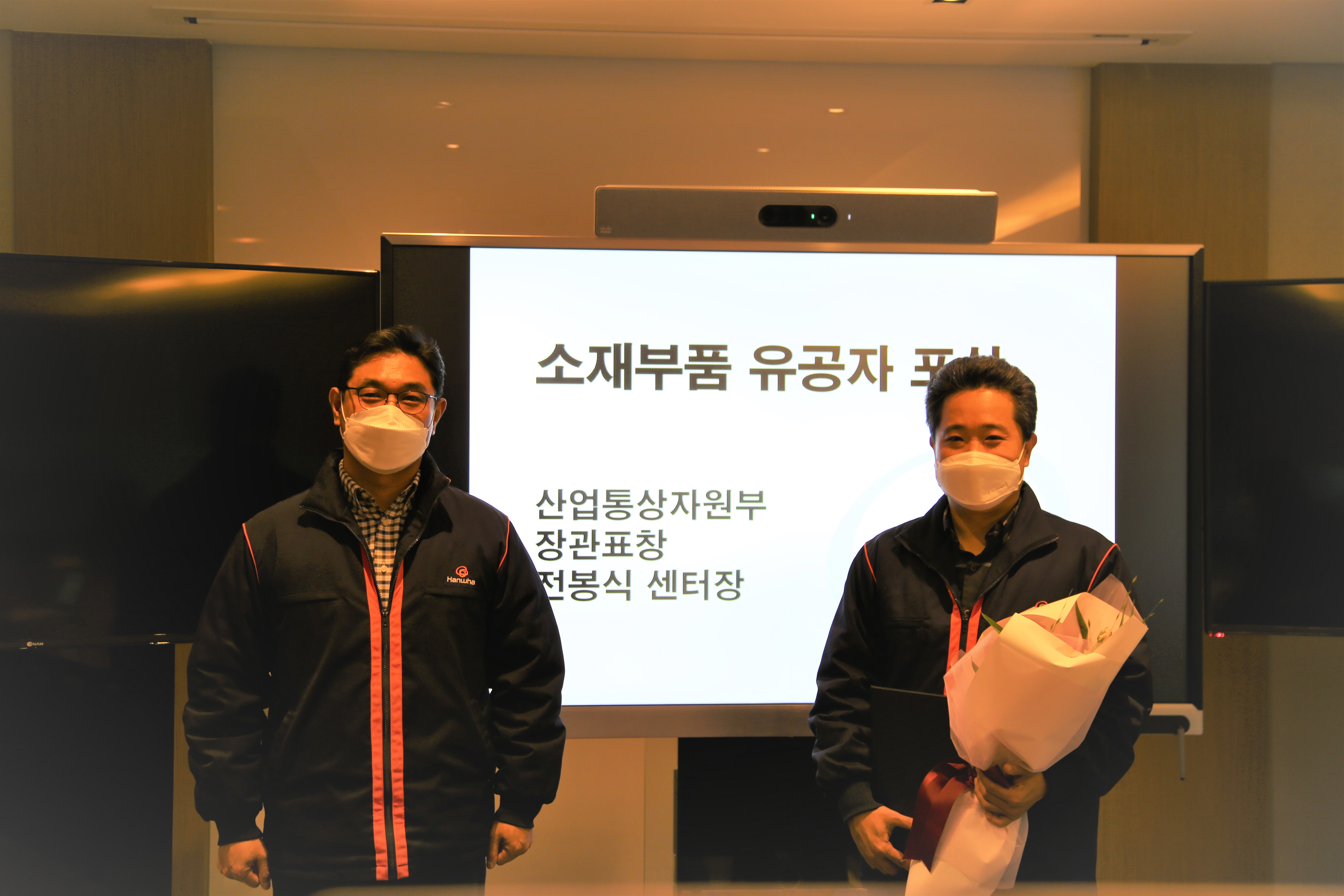 산업통상자원부가 주최하고 한국산업기술진흥원이 주관하는 “2021년 소재‧부품‧장비 발전 유공 포상”에서 촉매기술연구센터 전봉식 수석연구원이 산업통산자원부 장관 표창을 수상했습니다.