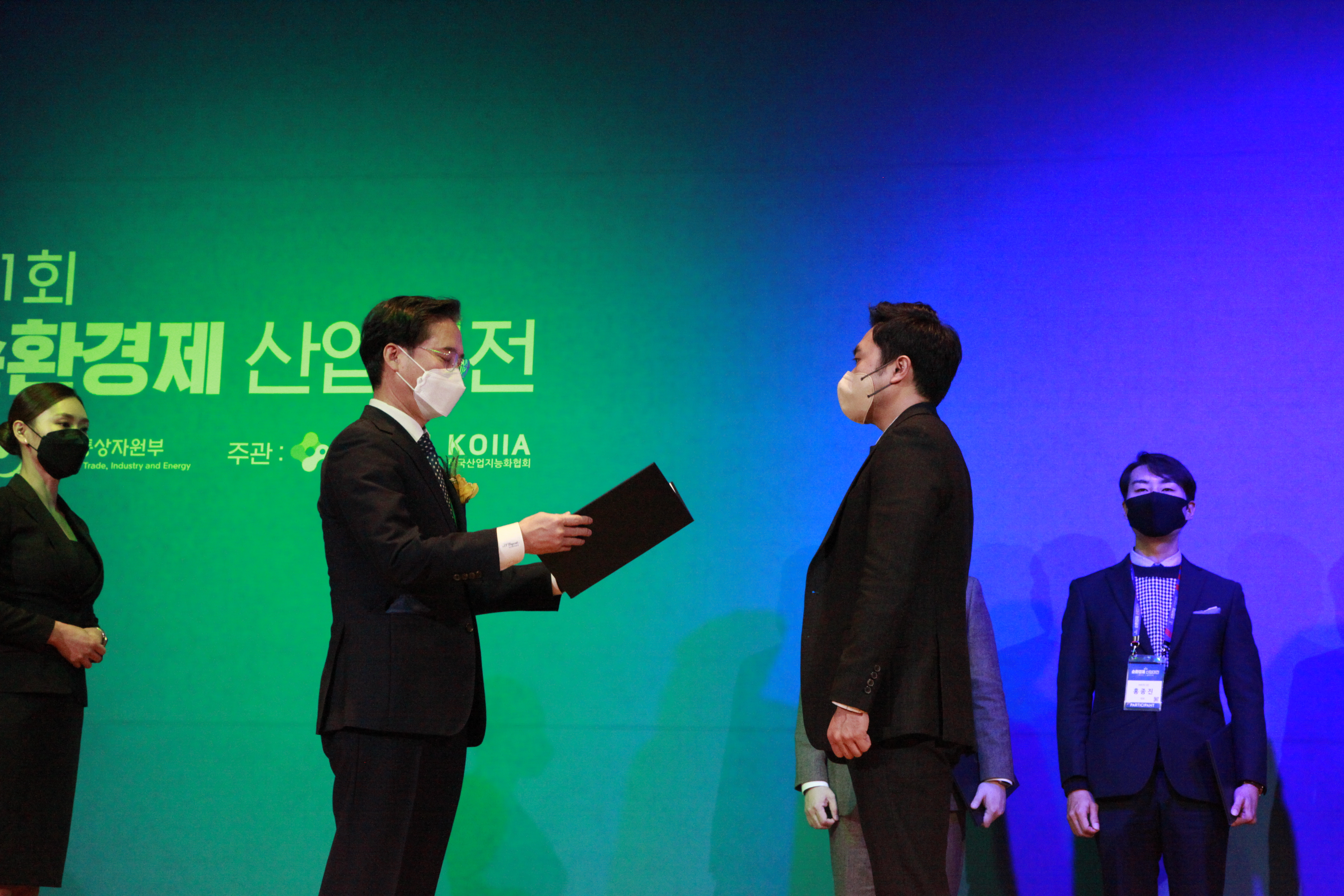 이번 포상은 생태산업단지구축 및 생태산업개발에 기여한 유공자를 선정하여 포상하는 것으로, 시상식은 지난 12월 23일 코엑스에서 열린 ‘제1회 순환경제 산업대전’에서 진행되었습니다.