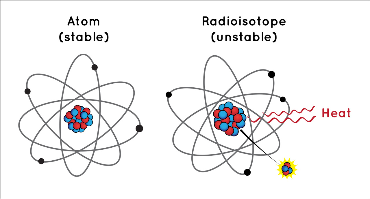 자연에 존재하는 원소는 대부분 방사선을 내는 동위원소를 가지고 있다고 위에서 설명 드렸는데요. 원소는 시간이 지나면 저절로 부서져 다른 원소로 바뀌는 경우가 있습니다. 이 때 방사선을 방출하면서 부서지는데, 이를 ‘방사성 동위원소’라 합니다.