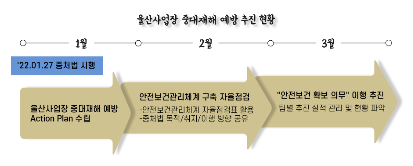 울산사업장은 임직원 및 협력업체 관계자 등 공장에 출입하는 모든 종사자의 안전과 건강을 보호하기 위해 지속적으로 노력하여 왔습니다.