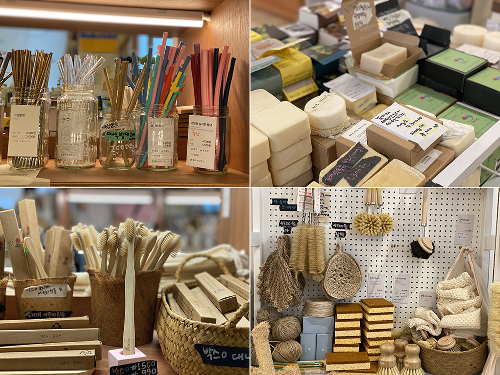제로 웨이스트 실천이 어렵다고 느껴지는 입문자가 가장 쉽게 시작할 수 있는 방법은 바로 ‘제로 웨이스트샵’에 방문하는 것입니다. 이 곳에 가면 일상생활에서 사용하던 물건을 손쉽게 제로 웨이스트 제품으로 바꾸어 사용할 수 있기 때문입니다. 생활용품이 떨어졌을 때 마트나 편의점 대신 이 곳을 먼저 찾는다면 쓰레기를 줄여나갈 수 있습니다.