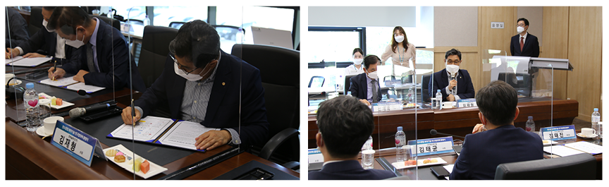 협약서 서명 후 이어진 간담회에서 각 사별로 진행중인 탄소중립 화학기술 개발 및 상업화 현황을 공유하였고, 중소기업/대기업 간 서로 협력하여 국가의 탄소중립 달성에 이바지 하고자 하는 뜻을 함께 하였습니다.
