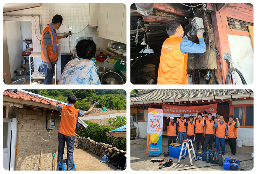 2013년부터 지속적으로 여수시 도서지역 및 농어촌지역의 어려운 이웃에게 전기수리 봉사활동을 지원하고 있습니다.