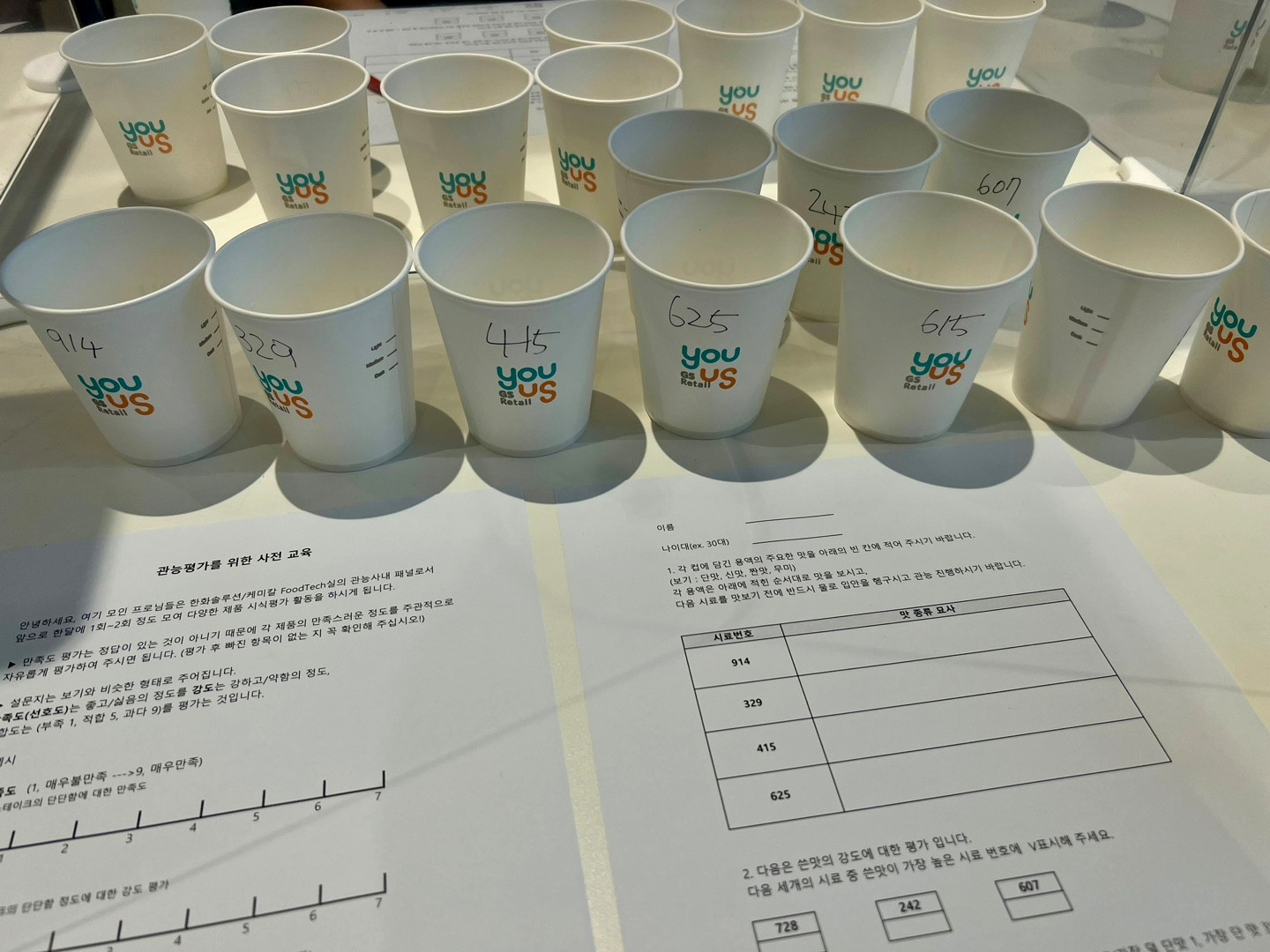 FoodTech실은 식물성 재료를 이용한 대체육 제품을 시장에 내놓기 위한 준비를 하고 있습니다. 이번 사내 관능평가도 이러한 취지에서 진행되었습니다. 제품 개발 과정에서 임직원들로부터 다양한 의견을 수렴해 맛과 품질 개선에 참고하기 위해서죠.