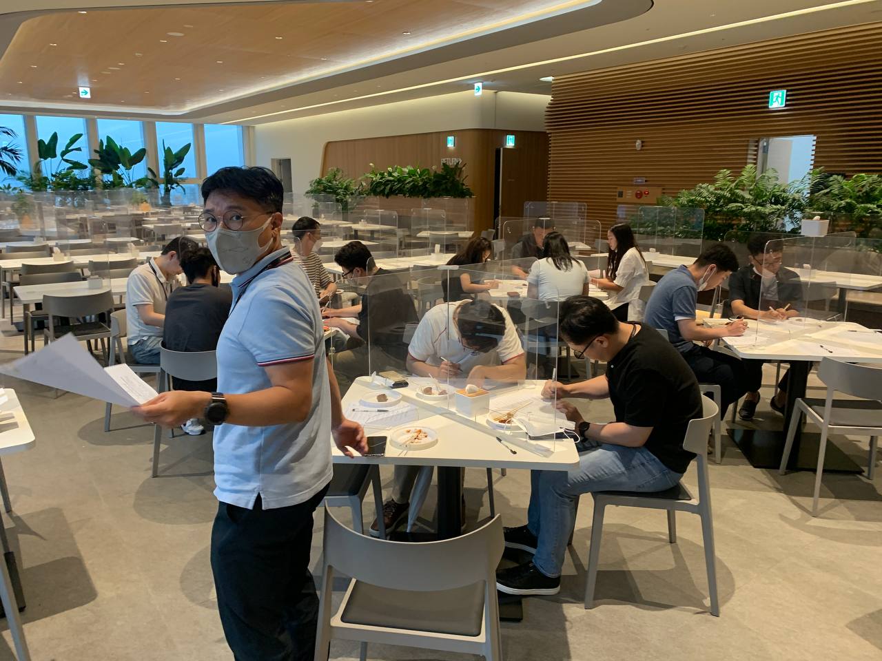 FoodTech실은 식물성 재료를 이용한 대체육 제품을 시장에 내놓기 위한 준비를 하고 있습니다. 이번 사내 관능평가도 이러한 취지에서 진행되었습니다. 제품 개발 과정에서 임직원들로부터 다양한 의견을 수렴해 맛과 품질 개선에 참고하기 위해서죠.
