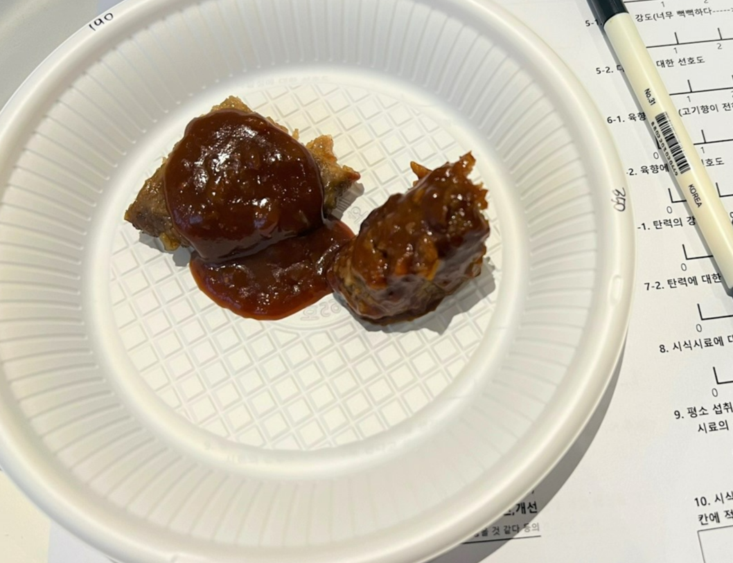 그렇다면 맛은 어땠을까요? 씹을 때 느껴지는 파삭거리는 식감과 입 안에 퍼지는 육향 또한 실제 고기와 유사했습니다. 개인의 차이가 있겠지만 맛을 본 직원들의 평가 또한 대체로 긍정적이었습니다.