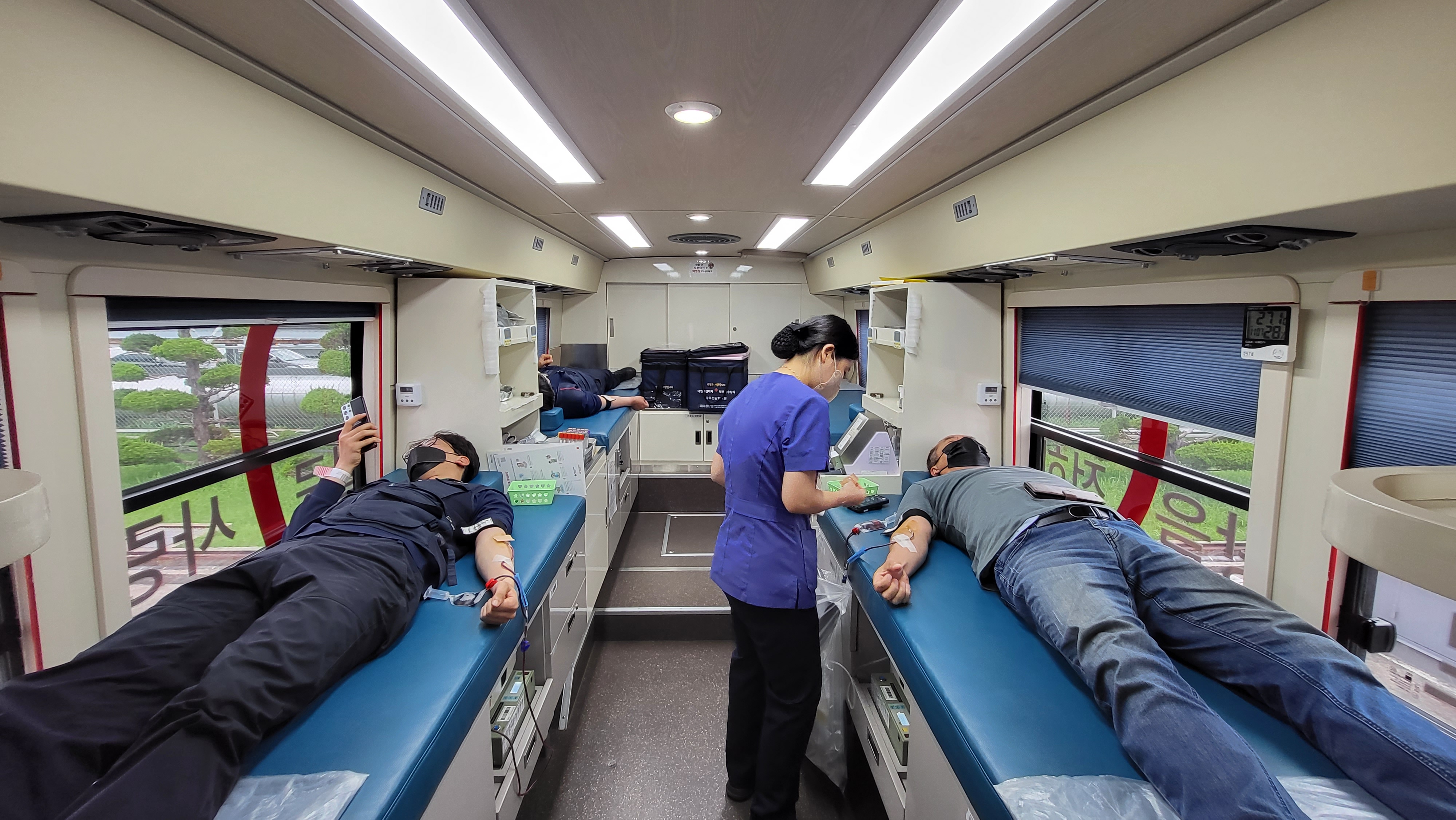 사전 접수를 통해 참여자를 모집하고 현장에서 함께 일하는 협력업체 직원들도 함께 하였습니다. 많은 직원분들이 신청을 해주셨는데, 아쉽게도 조건이 되지 못해 헌혈을 못 하신 분들도 있었지만 이웃사랑을 실천하고자 하는 따뜻한 마음을 느낄 수 있었습니다.