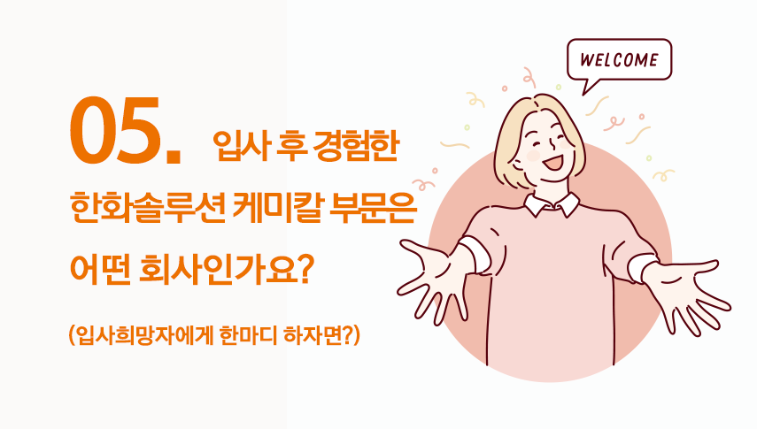 한화솔루션 케미칼 부문 공무팀 위정민 프로, 전가영 프로 입니다.