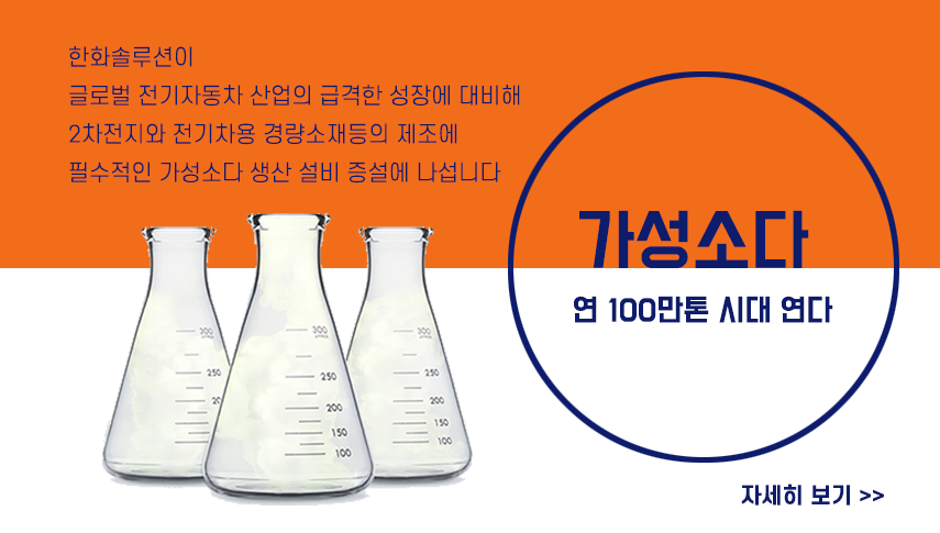 전기자동차 시장이 급격하게 성장하고 있는 만큼, 2차 전지 및 전기차용 경량소재 제조에 꼭! 필요한 가성소다 생산을 늘리기 위해서죠.