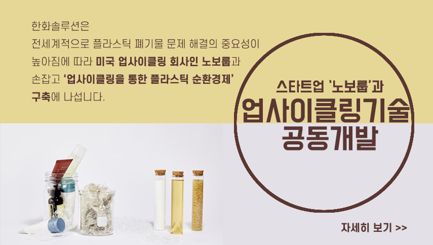 6월에는 한화솔루션이 미국의 친환경 스타트업 노보룹(Novoloop)과 손 잡고 업사이클링 기술 공동개발에 참여했습니다.