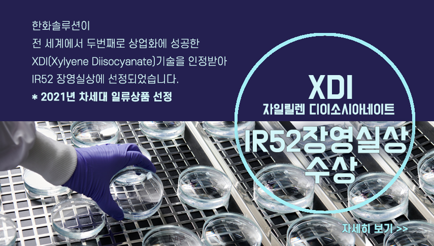 11월에는 한화솔루션이 전 세계에서 두번째로 상업화에 성공한 XDI(Xylyene Diisocyanate)기술이 IR52 장영실상에 선정되었습니다.