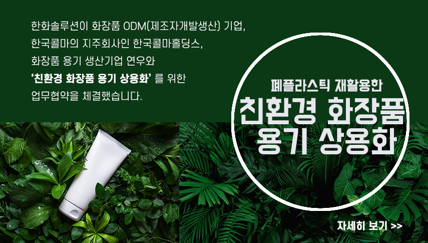 8월에는 한화솔루션이 한국콜마홀딩스, 화장품 용기 생산기업 연우와 손을 잡고 ‘친환경 화장품 용기 상용화’ 를 위한 업무협약을 체결했습니다.