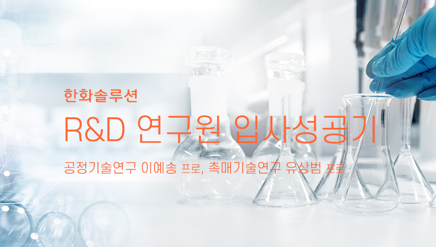 한화솔루션 케미칼 부문 공정기술 연구센터 이예송 프로(화학공학 전공) & 촉매기술연구센터 유상범 프로(화학공학 전공) 를 소개해드립니다.