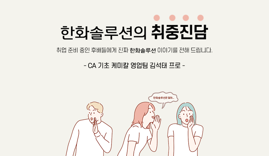 취업 준비 중인 후배들에게 진짜 한화솔루션 이야기를 전하는 취중진담 시리즈 입니다.