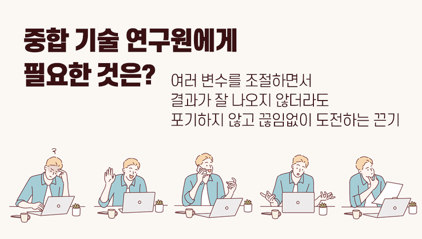 그리고 상업화 과정에서 타 센터와 협업하거나 상업 공장과 협업할 일이 많기 때문에, 협업 능력과 의사소통 능력이 필수적입니다. 또, 초기 연구 단계에서는 각종 연구소나 대학과 함께 연구를 진행하기도 하고, 여러 센터가 함께 TF를 구성하여 연구를 수행하는 경우도 많구요.