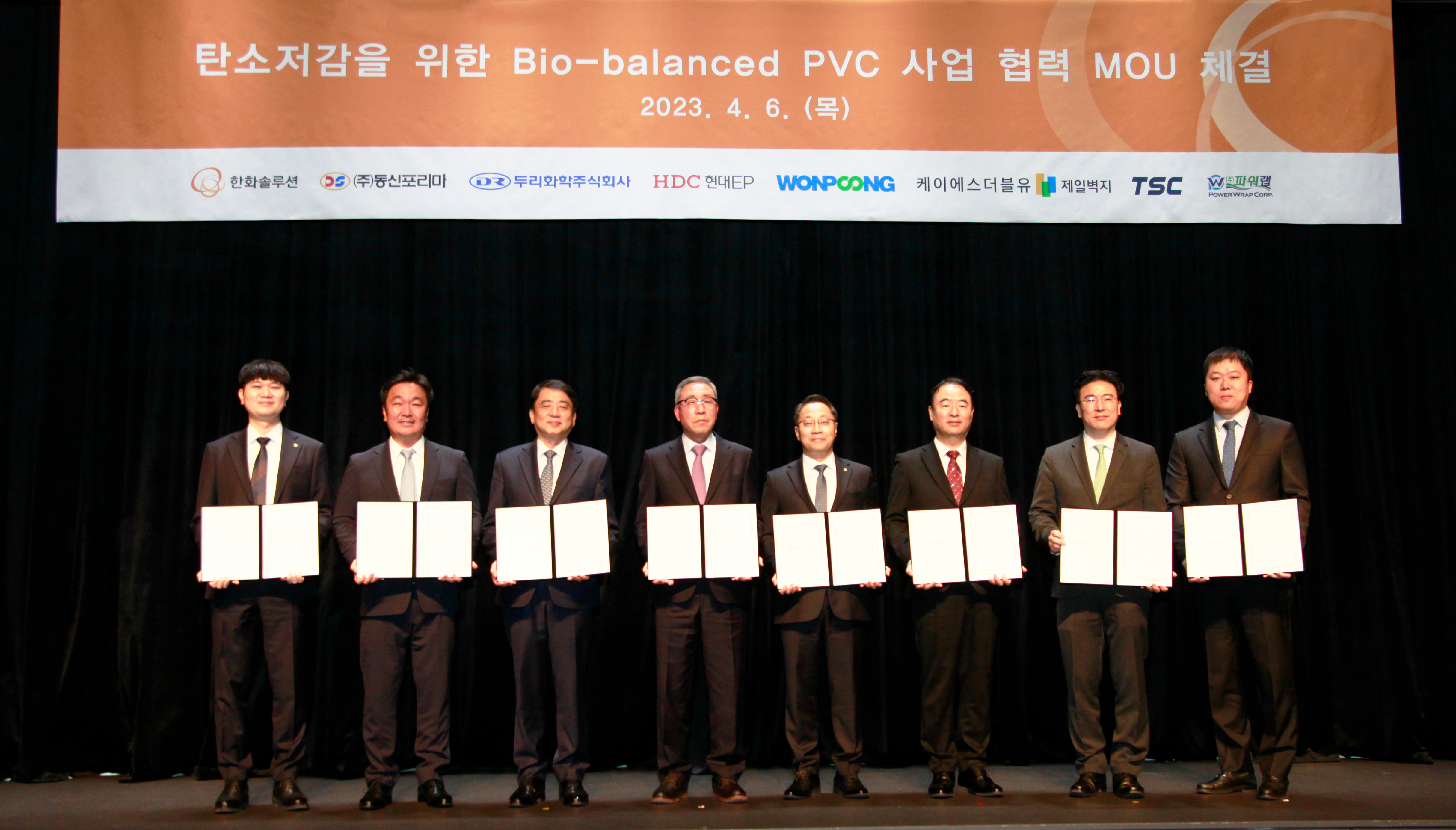 한화솔루션은 지난 6일, 7개 PVC 협력사와 ‘탄소저감을 위한 바이오 PVC 사업 협력 MOU’를 체결했습니다.