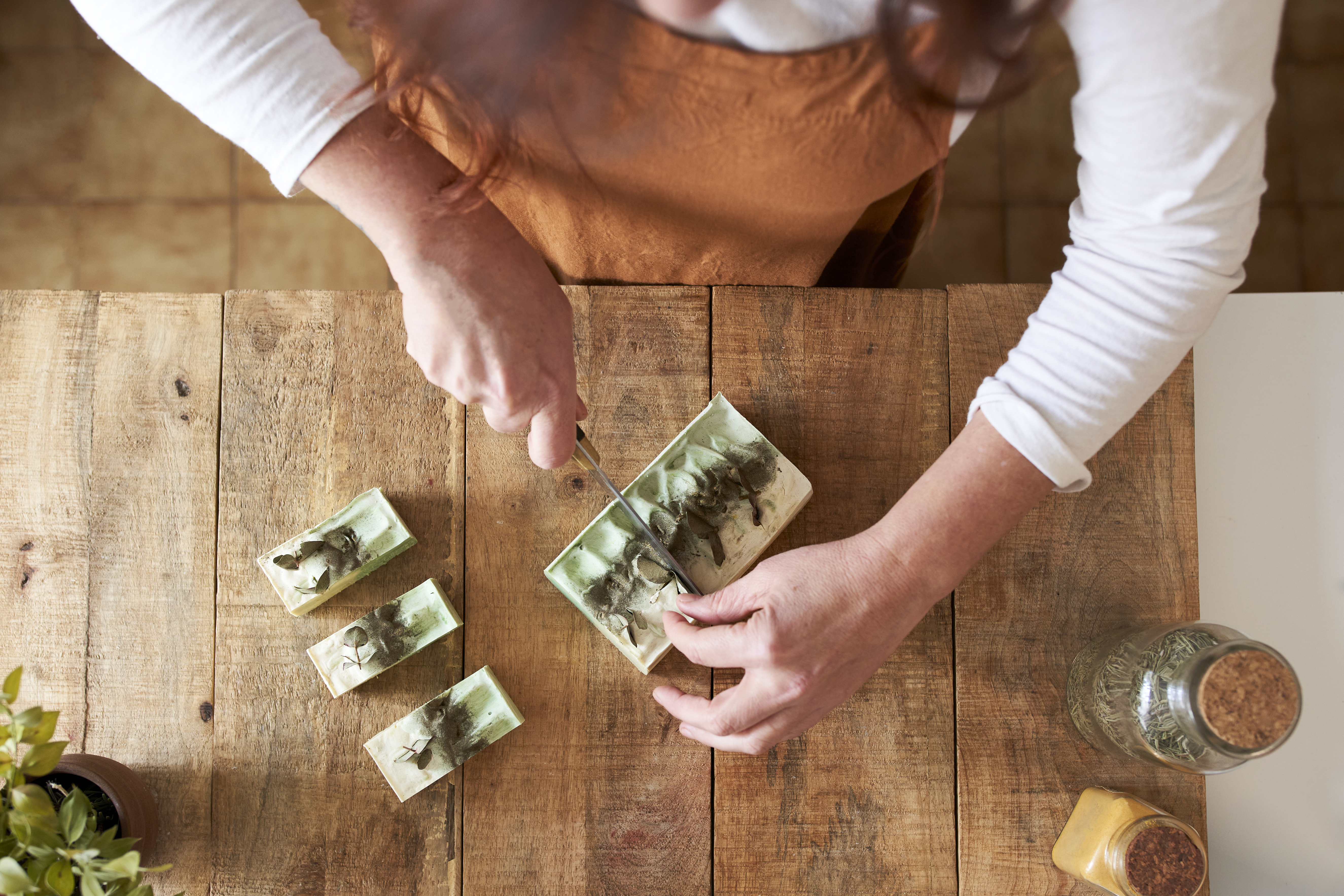 고체비누는 집에서도 손 쉽게 만들 수 있다는 장점이 있습니다. 1) 식물성 오일에 물과 함께 희석한 가성소다를 섞은 뒤, 2) 천연색소와 향을 넣어 비누틀에 붓고, 3) 이를 4~8주 동안 완전히 건조시켜주면 나만의 고체바를 만들 수 있습니다.