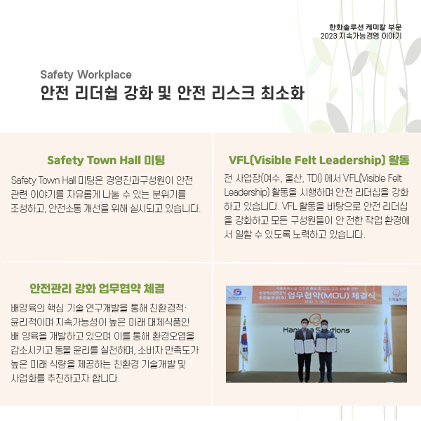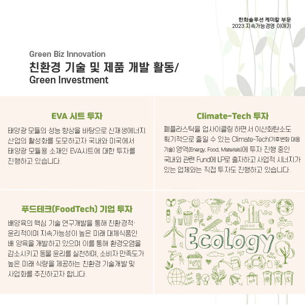우리 사회와 지구가 지속가능한 발전을 이어갈 수 있도록 오늘도 우리 한화솔루션은 할 수 있는 일들을 고민하고 실천하도록 하겠습니다.