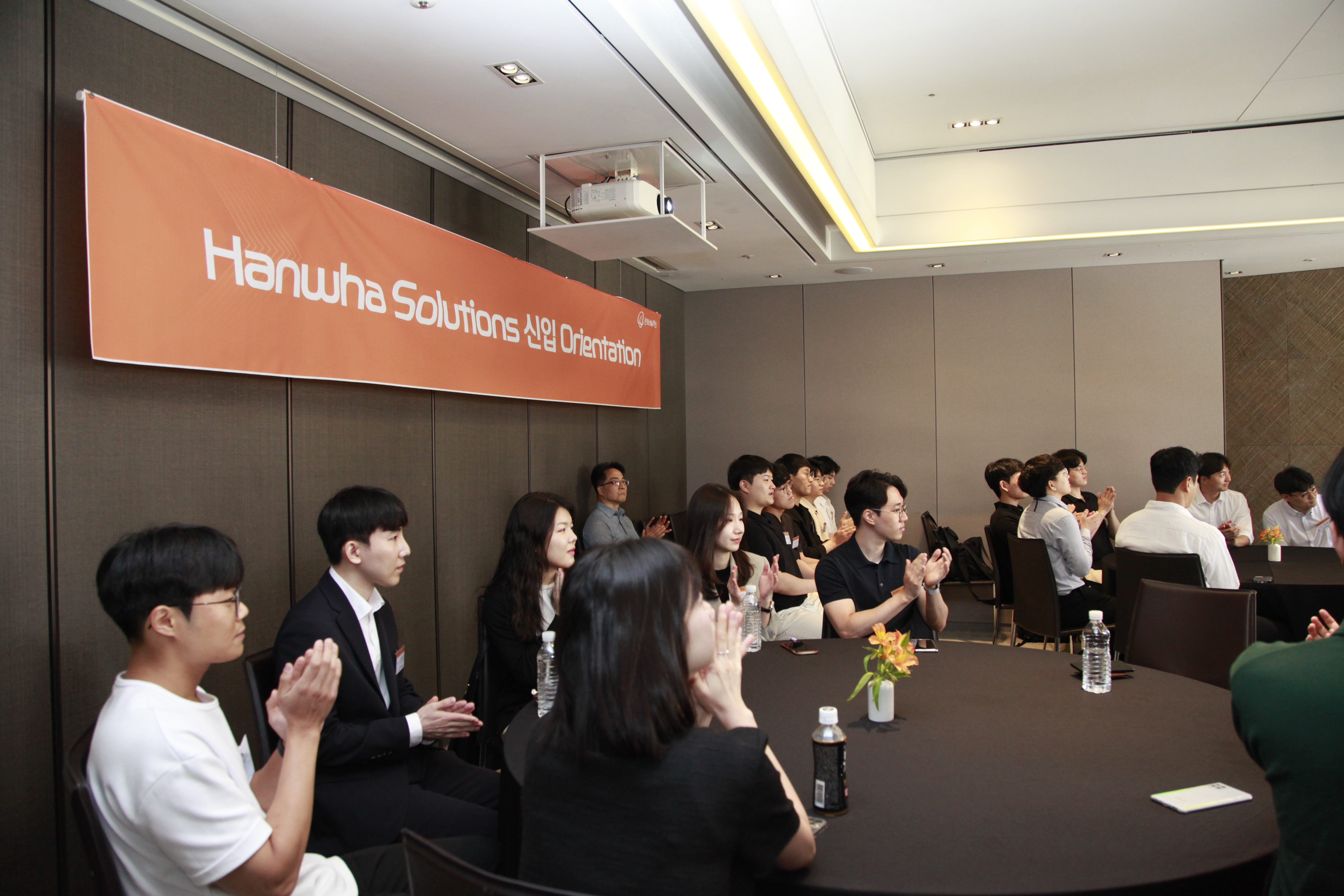 본사 인사팀이 주관하고, 엔지니어와 R&D 직무 등 약 40명의 합격자들이 참석한 이번 행사는 한화솔루션의 비즈니스 소개와 복지 및 처우 안내, QnA시간, 근로계약서 작성, 선배 사원 간담회 순으로 진행되었는데요.