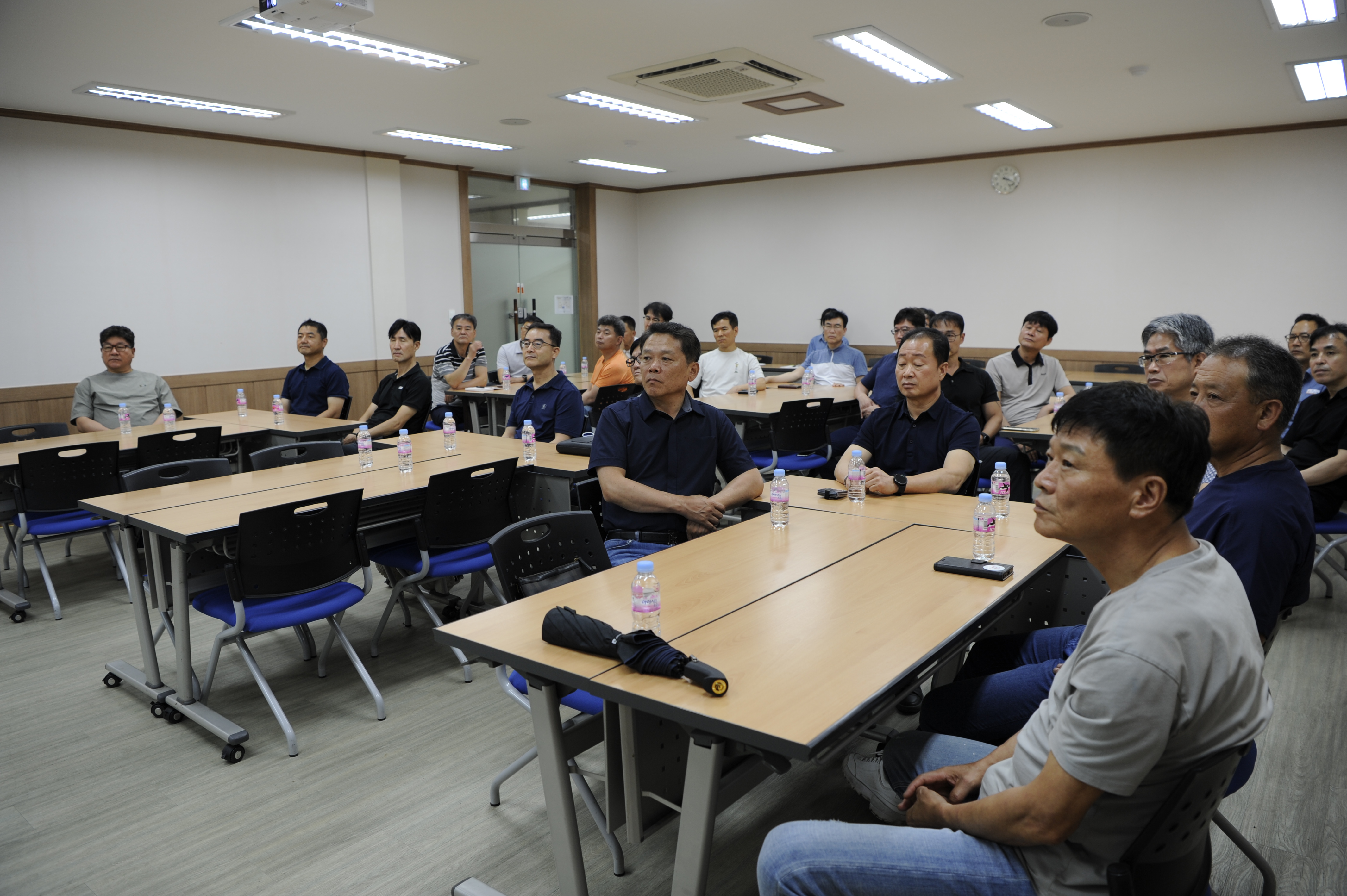 장상무 안전보건환경실장은 현장의 불안전한 상태 적인 요소에 대해 알아보고 개선하기 위한 현장중심의 자율안전관리 체계 구축을 위한 화합, 소통, 공감을 강조하였습니다.