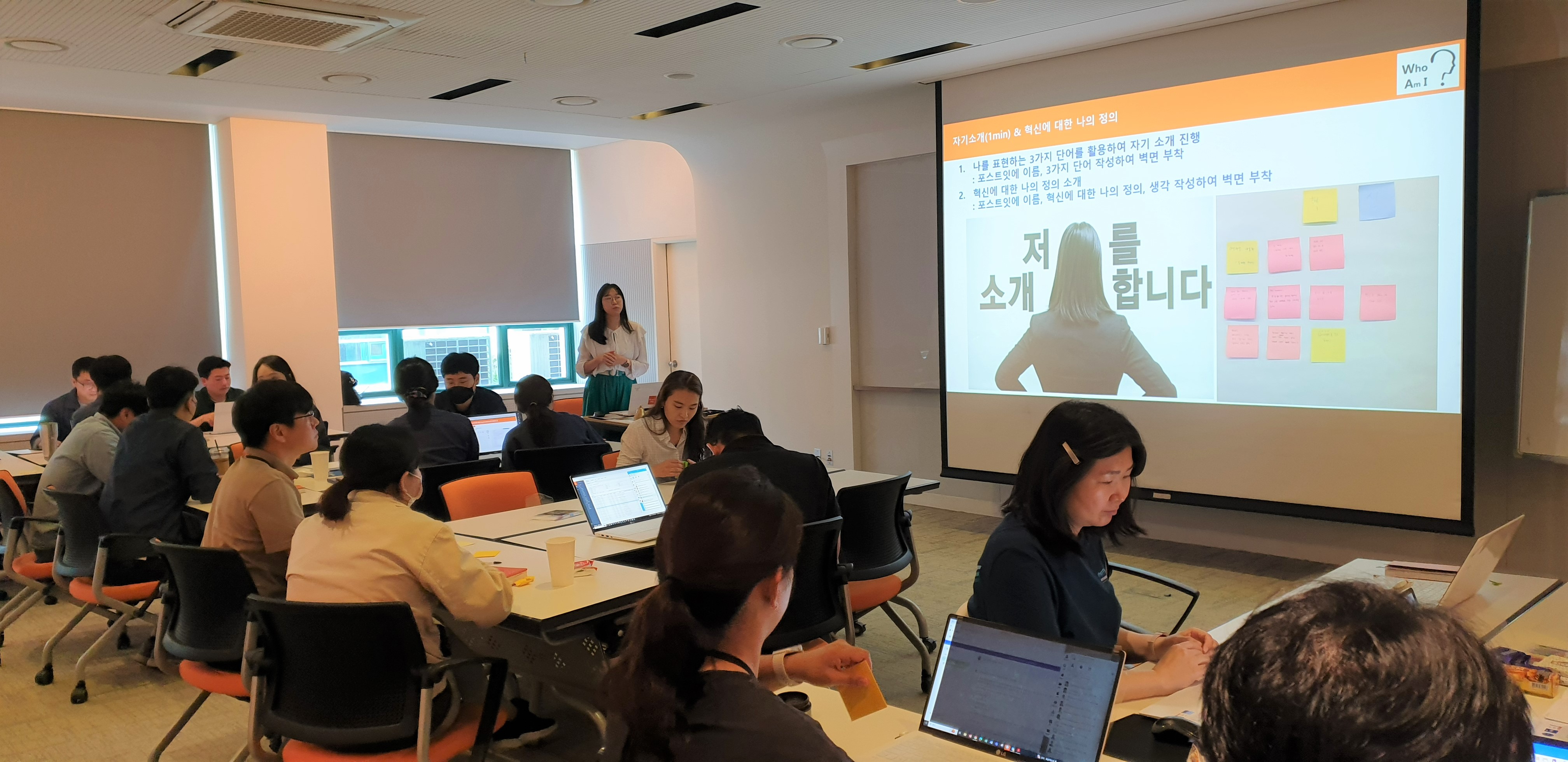 팀별 혁신 활동에 앞서, Innovation이란? 변화에 대한 Fact Check, Teamwork 주제로 김재형 연구소장의 강의가 있었습니다.