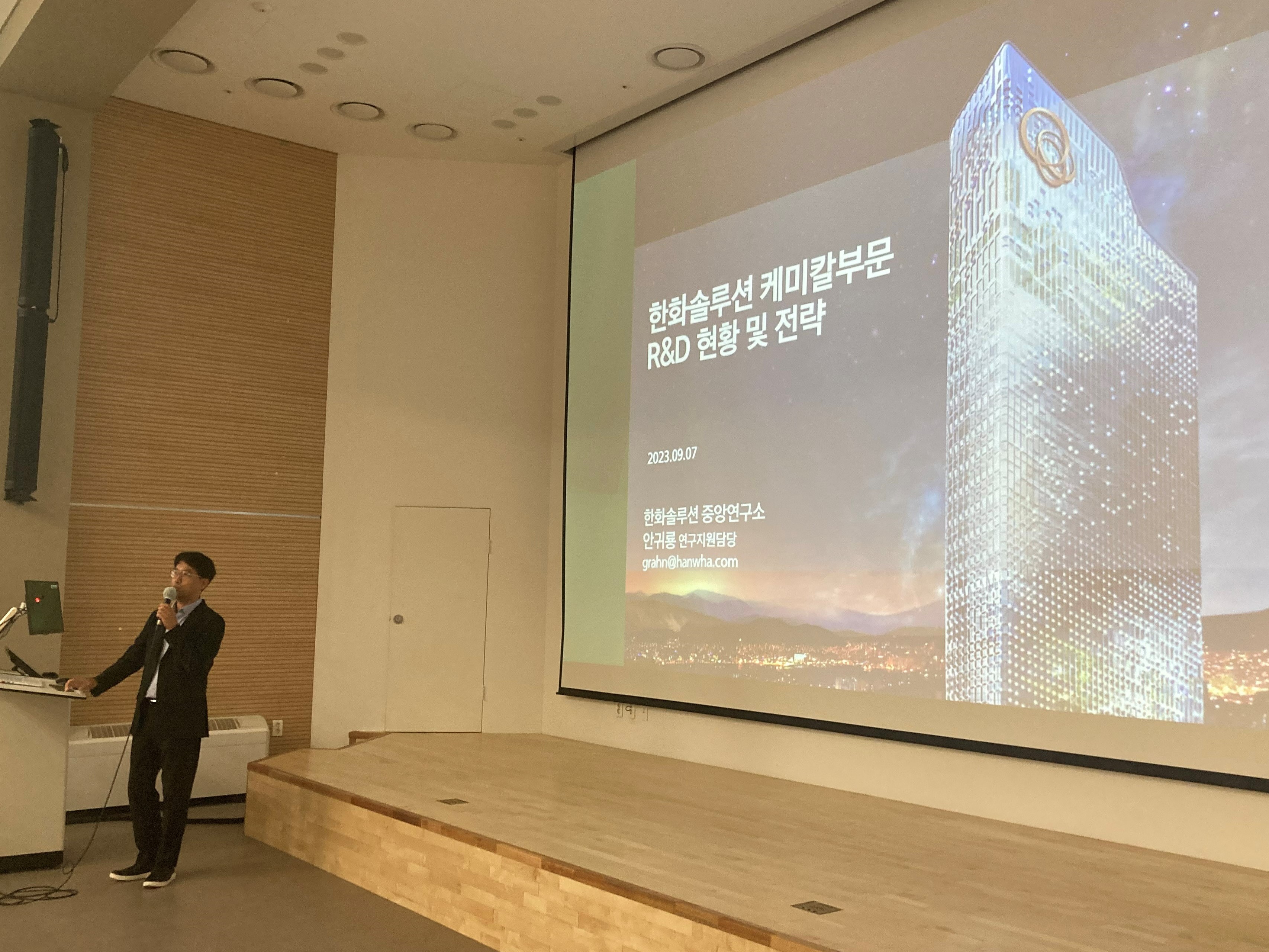 한화솔루션은 앞으로 세미나를 통해 대학생들에게 기업 R&D 실무, 개발 성과와 관련된 강의를 제공하는 한편, 한화솔루션 연구인력으로서 커리어 비전을 제시하여 채용 홍보 활동 또한 활발히 펼쳐나갈 계획입니다.