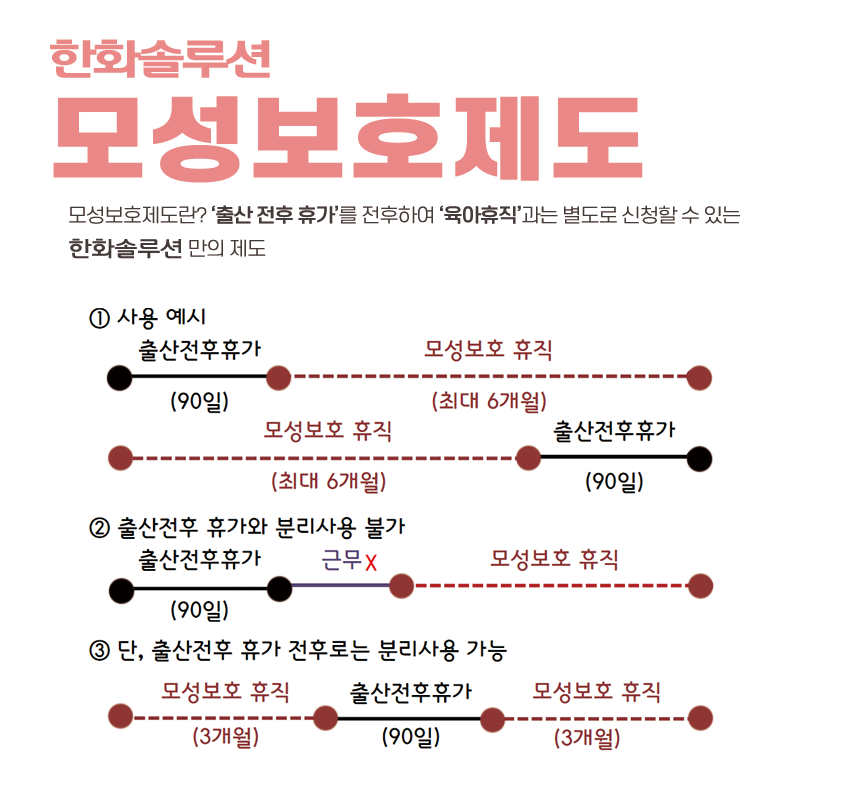 법정 휴가로 채워지지 못하는 부분들을 한화솔루션의 모성보호제도들이 일부 채워주고 있어,