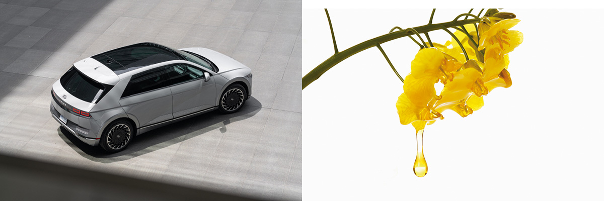 이 밖에도 자동차 시트 가죽을 염색 할 때 아마씨앗에서 추출한 식물성 오일을 사용하거나, 유채꽃, 옥수수 등에서 추출한 바이오 오일 성분을 이용한 페인트로 도어트림(문짝), 도어 스위치, 크래시 패드를 칠하는 등 친환경 식물성 오일도 자동차 제조 공정에 사용되고 있습니다.
