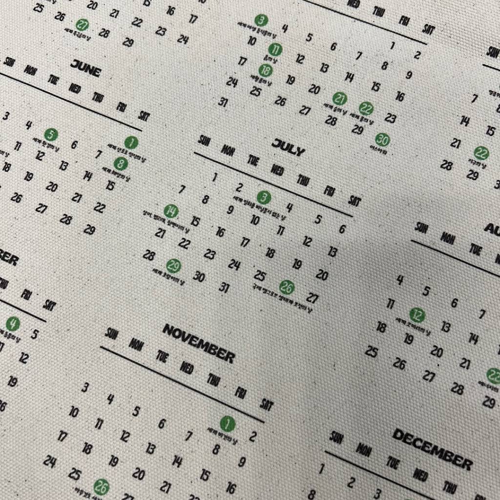 패브릭 달력을 20분께 드리겠습니다 (환경과 관련된 기념일이 표시되어 있어요!)