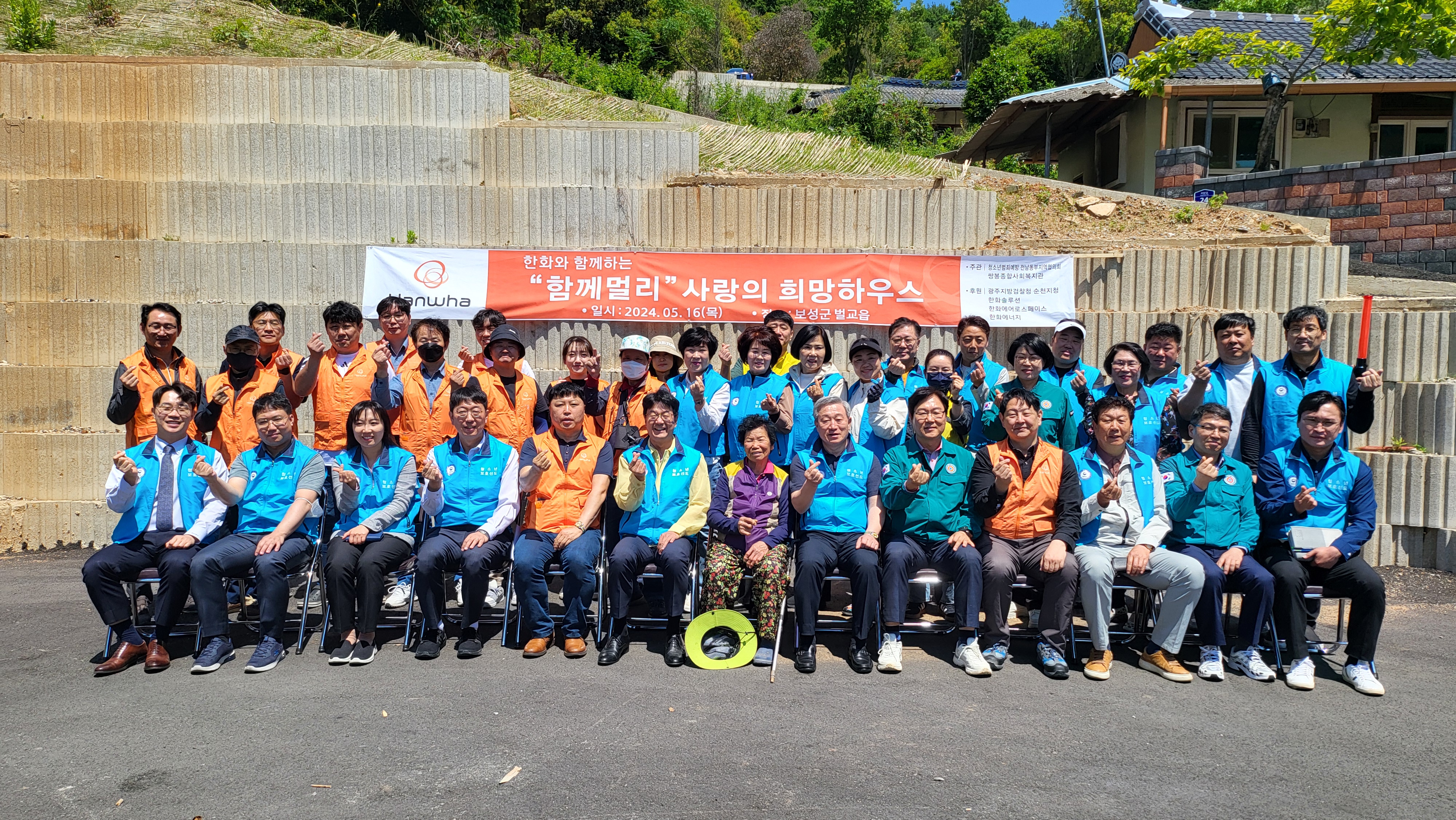 한화솔루션, 한화에어로스페이스, 한화에너지 등이 소속된 한화 호남지역 연합봉사단은 거동이 불편하거나 경제적 어려움을 겪고 있는 가정을 도와 집 수리 봉사활동을 실시하였으며, 법무부 청소년 범죄 예방 전남동부지역 연합회, 쌍봉종합사회복지관과 함께 하였습니다.