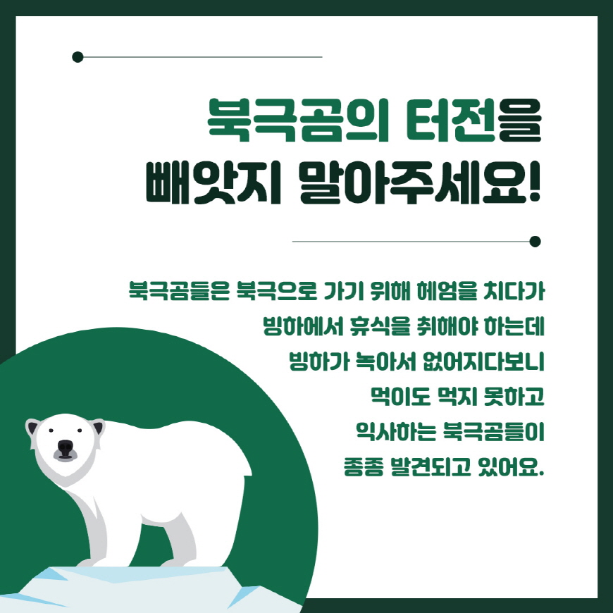 지구온난화로 바다친구들의 터전을 빼앗고 있는 지 몰라요