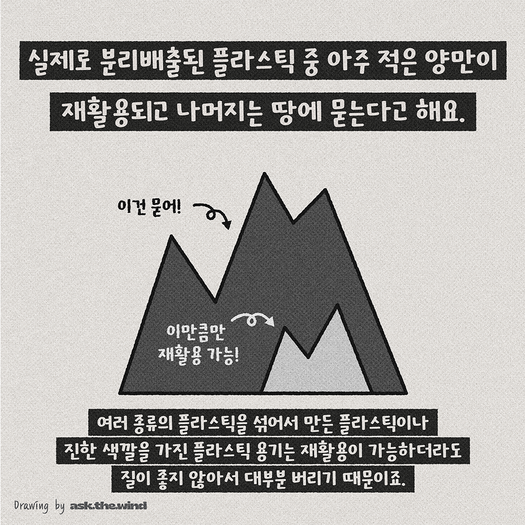 재활용되는 쓰레기 중 재활용되는 양은 매우 적고 나머지는 그대로 매립된다고 해요.