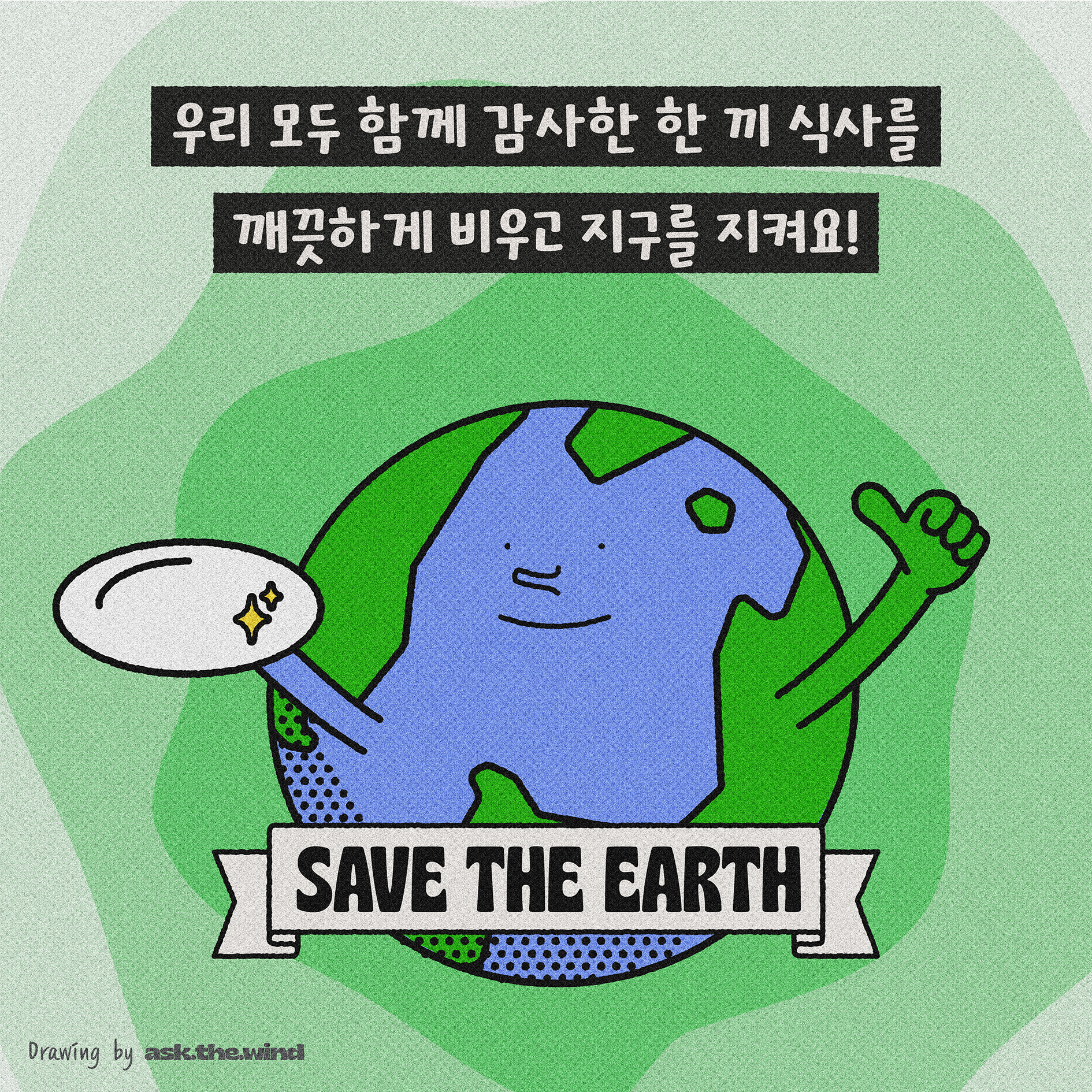 모두 함께 감사한 한끼 식사를 깨끗하게 비우고 지구를 지켜요.