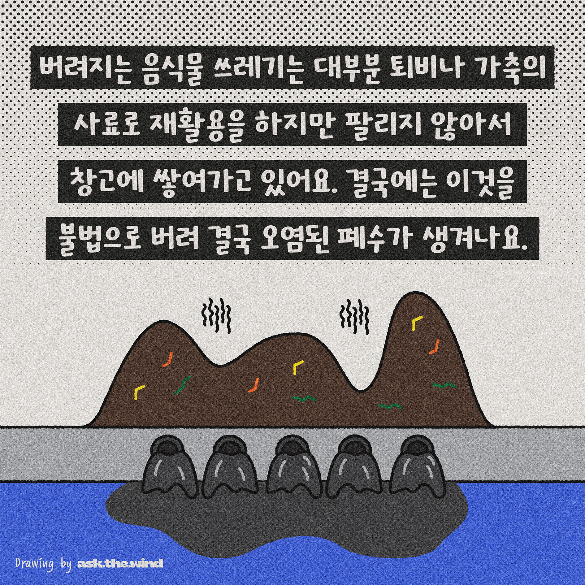 버려지는 음식물 중 일부는 불법으로 버려져 오염된 폐수가 생겨나요