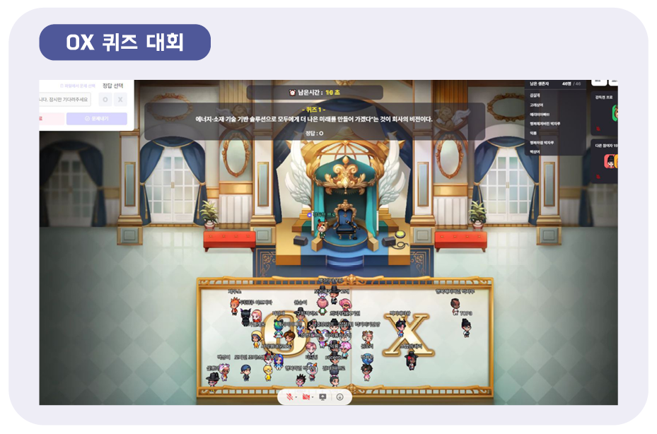 한화솔루션 울산공장은 지난 9월 12일, 회사의 비전과 미션을 공유하고 추석을 맞이하여 조직 문화를 활성화하기 위해 메타버스를 활용한 비전 골든벨 OX 퀴즈 대회를 개최했습니다.