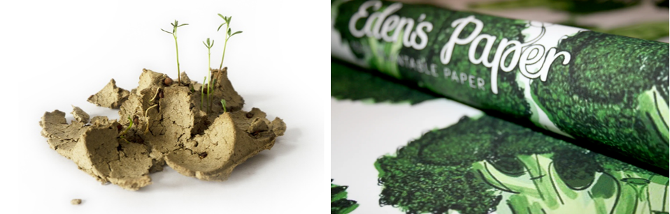 영국 BEAF사는 심을 수 있는 포장지 ‘Eden’s Paper’를 만들었는데, 7겹의 티슈페이퍼 층 사이에 씨앗이 숨겨져 있으며, 씨앗은 당근, 토마토, 브로콜리, 고추, 양파 등이 있습니다.