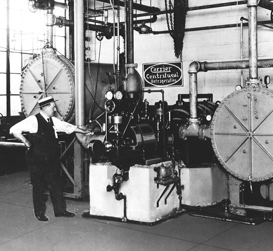 '캐리어 에어컨'은 쇼핑센터와 영화관, 미 해군 구축함 기관실, 고층 빌딩과 국립 방송센터, 백화점 등에 설치됐으며, 1928년 브라질에서는 광부들의 작업 환경을 개선하기 위해 금광에 원심분리기를 설치하였습니다.