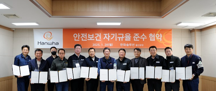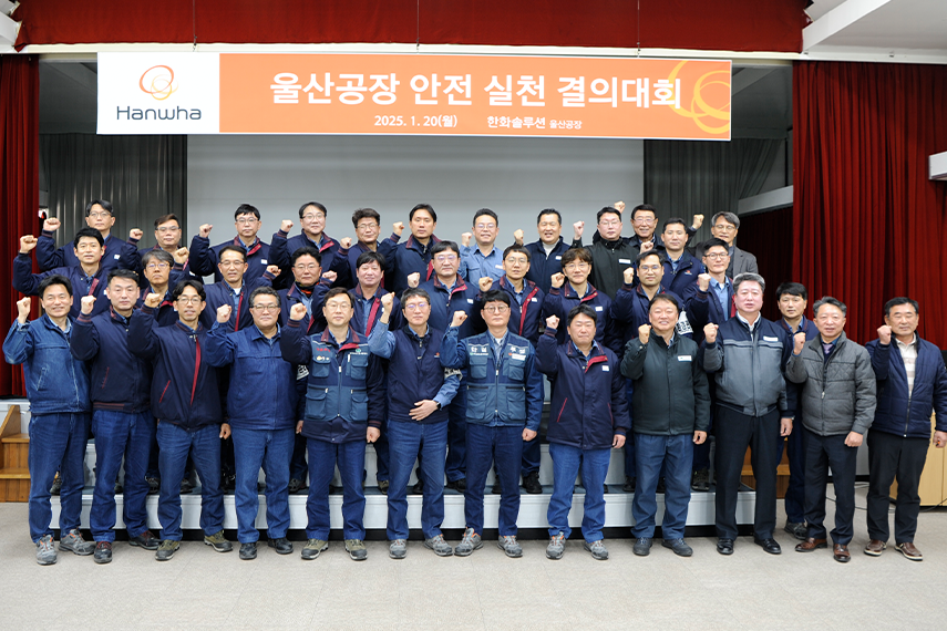 한화솔루션 울산사업장은 앞으로도 변함없이 안전 원칙을 준수하고 긍정적인 안전 문화를 정착시켜 나갈 것입니다. 노사는 물론 협력사와의 협력 체계를 더욱 강화하여 모두가 자부심을 갖고 일할 수 있는 안전한 일터를 만들어가겠습니다!