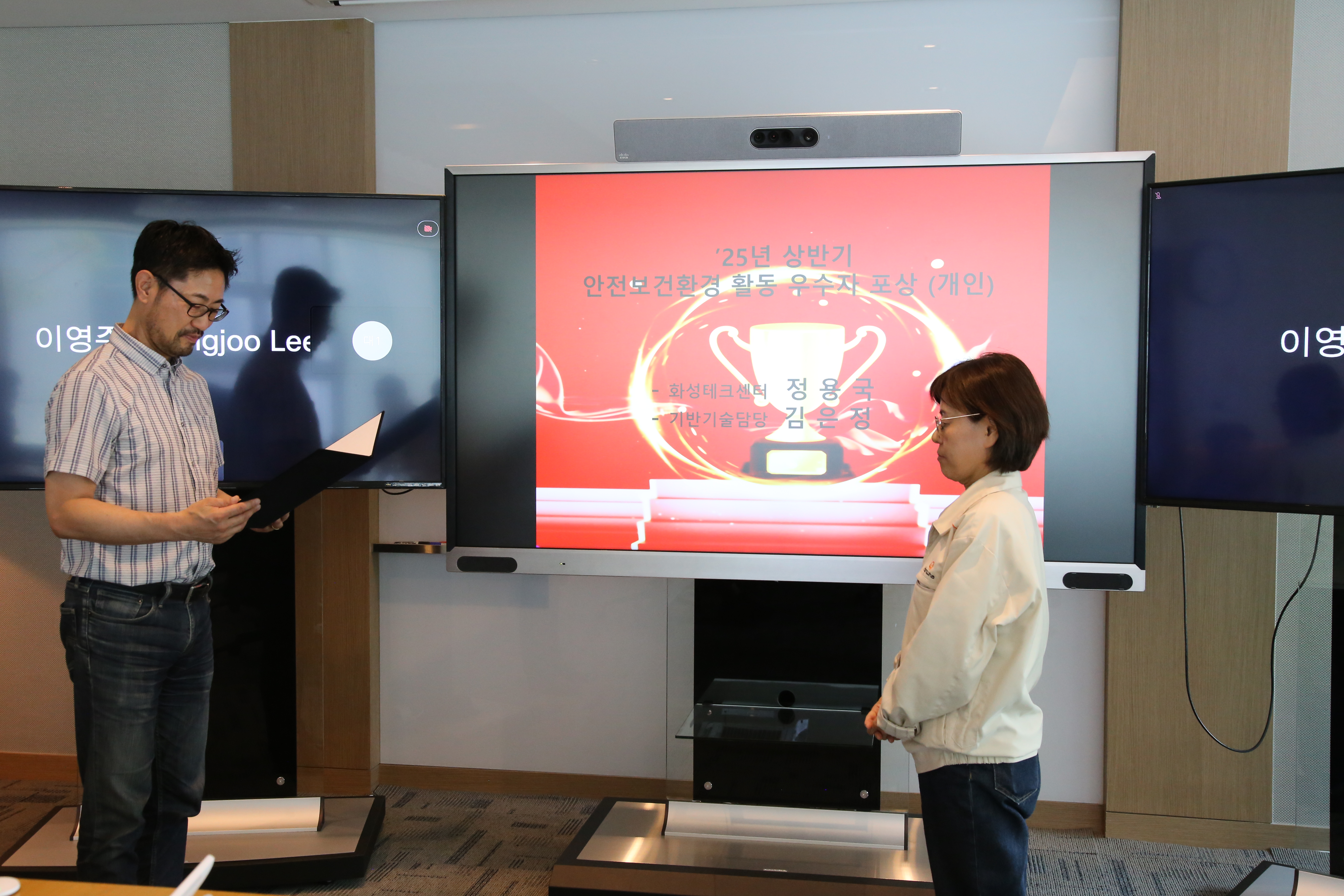 두 수상자 모두 일상 속에서 세심한 관찰과 적극적인 개선 활동을 통해 안전하고 건강한 근무 환경 조성에 큰 기여를 해주셨습니다.