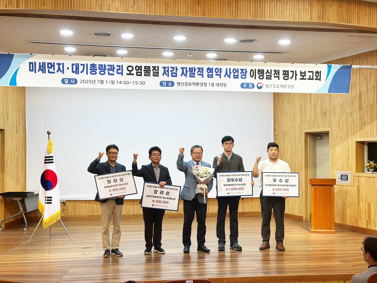 한화솔루션 여수사업장이 이번 7월 17일 영산강유역환경청(청장 김영우)에서 열린 「2024년 미세먼지 및 대기총량 자발적 협약 성과 보고회」에서 장려상을 수상했습니다.
