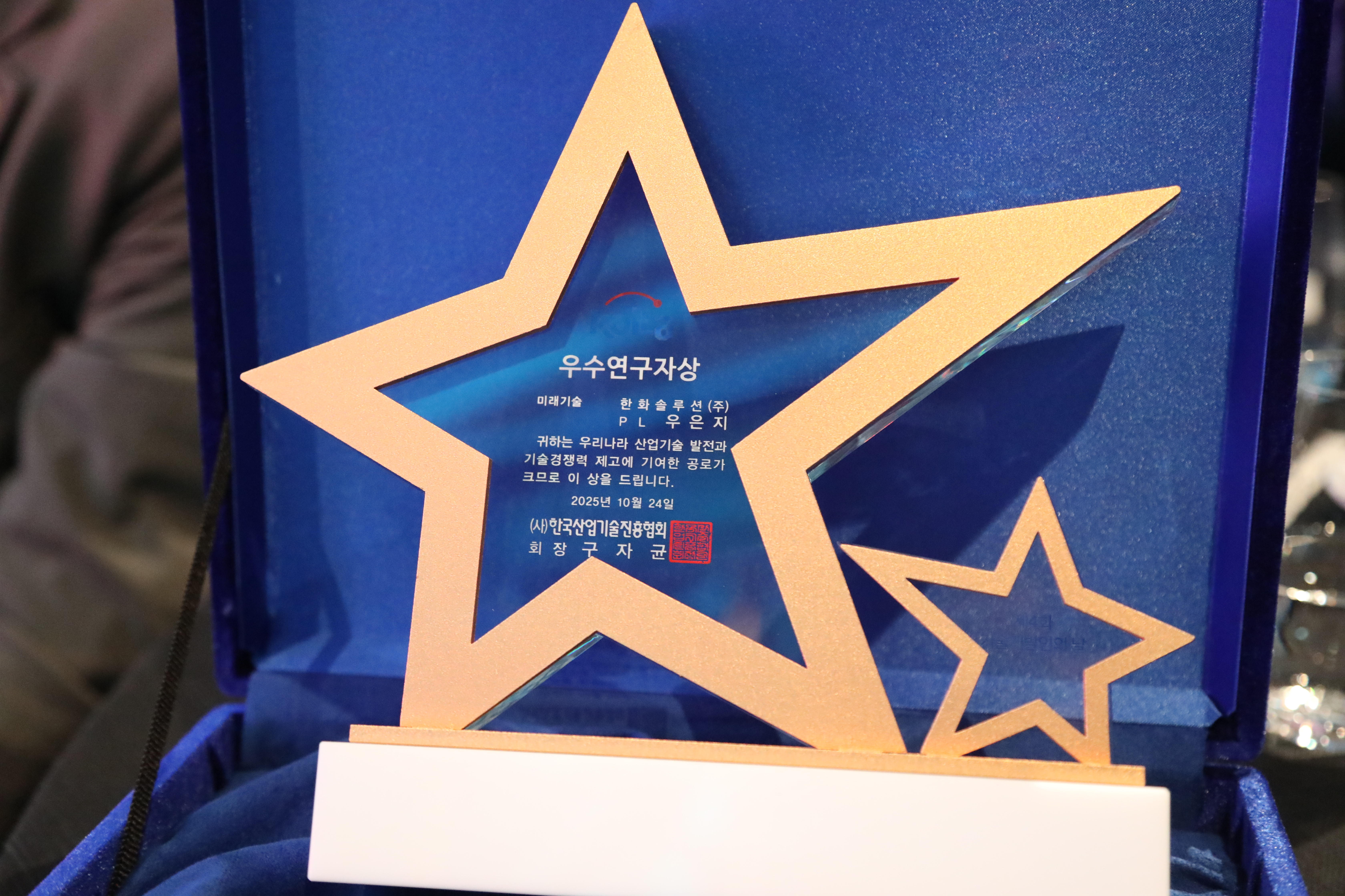 우은지 PL은 XDI 응용제품 개발을 추진하여, XDI 소재의 상업화 및 품질 개선을 주도하고 광학 제조 기술 내재화 및 국내 렌즈 소재 기술 자립화에 기여한 공을 인정 받아 산기협 우수연구자상(미래기술 부문)을 수상하였습니다.