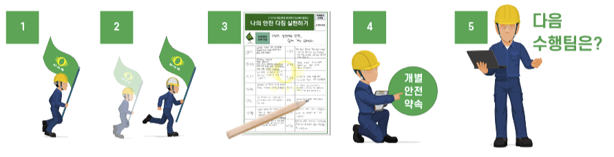 1. 안전보건팀이 이전 수행 팀으로부터 깃발을 인수받습니다.